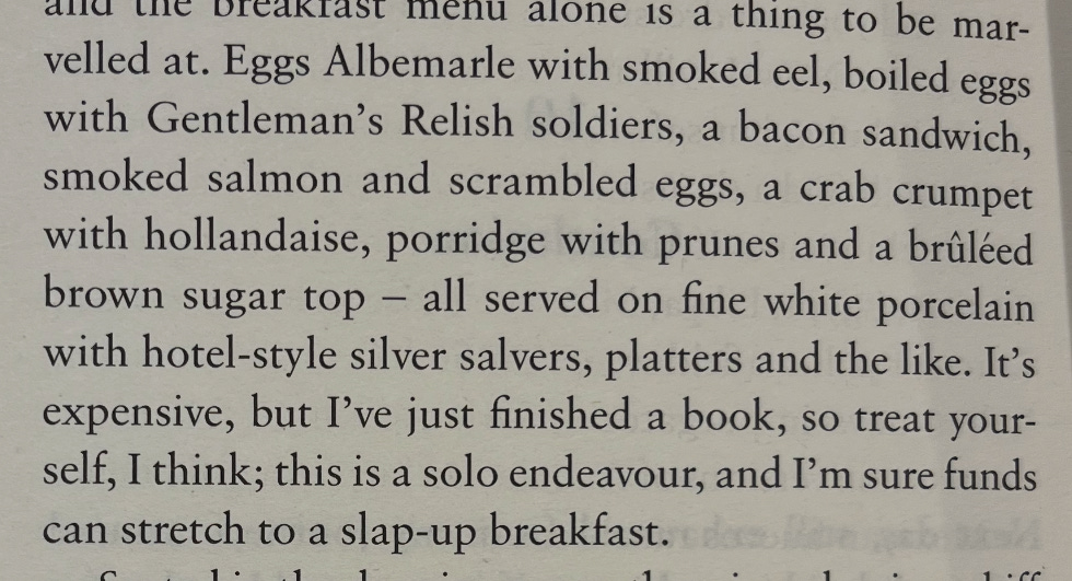 In Ben Benton’s survey of British food, ‘All You Can Eat: The Search For a New British Menu’, at the very end he imagines going to have a slap up breakfast at Brown’s and imagines the menu … and there it is, Gentleman’s Relish on the soldiers (I think, at the time, they actually made their GR themselves and now it doesn’t seem to appear on the menu at all). Yet there it is … luxurious and old-fashioned: